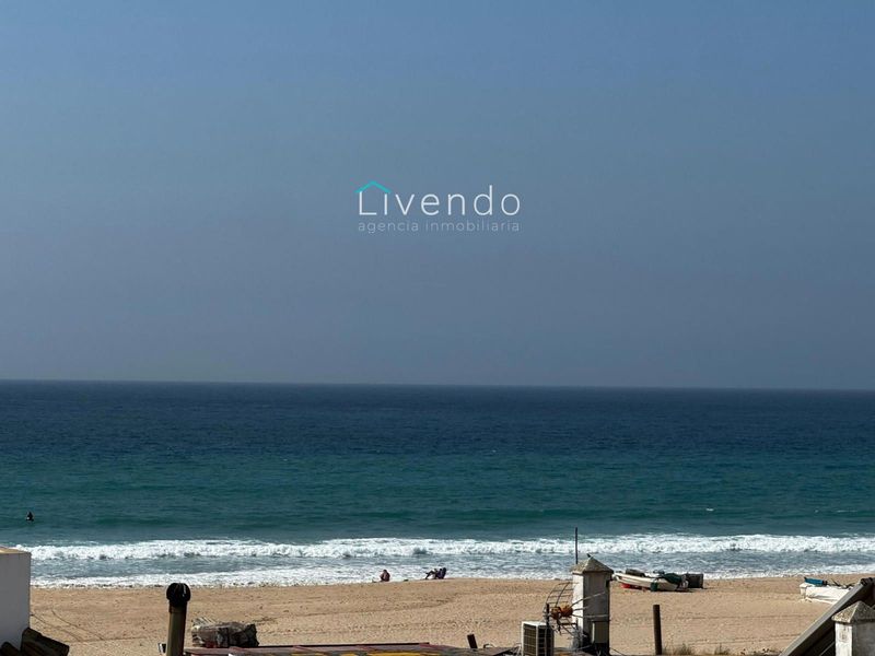 70-meter town house in Conil de la Frontera is three stories high, with a living room, kitchen, toilet, two bedrooms, a full bathroom, and a roof terrace.